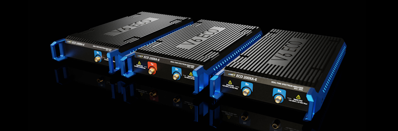 Aaronia SPECTRAN® V6 ECO -sarjan USB-reaaliaikaiset spektrianalysaattorit. SPECTRAN® V6 ECO -sarja on Aaronian uusimman sukupolven kustannustehokas, reaaliaikainen spektrianalysaattori. Jo perusmalli SPECTRAN® V6 ECO 100XA-6 on varustettu 44 MHz:n reaaliaikaisella kaistanleveydellä. V6 ECO 150XA-6 -versiossa on lisäksi 44 MHz:n lähetinlähtö. Tämän analysaattoriperheen huippumallissa V6 ECO 200XA-6 on kaksi erillistä tuloa (kaksoisvastaanotto) ja 2×44 MHz:n RTBW, jotka voidaan konfiguroida erikseen.