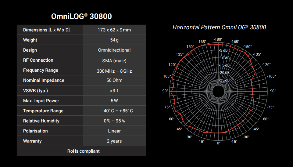 OmniLOG®-sarja koostuu erinomaisista, kustannustehokkaista laajakaista-antenneista, jotka soveltuvat radiaalisiin, isotrooppisiin mittauksiin 300 MHz:stä 8 GHz:iin. Ne kattavat useimmat radiotaajuuslähteet, kuten LTE:n, GSM:n, UMTS:n, WLANin jne.