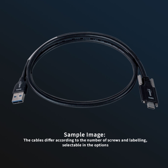 USB-kaapeli, jossa on merkinnät ja ruuvit erityisesti suurta tiedonsiirtonopeutta (10 Gbit/s) ja nopeaa latausta (60 W) varten. Kaapeliversio valittavissa!
