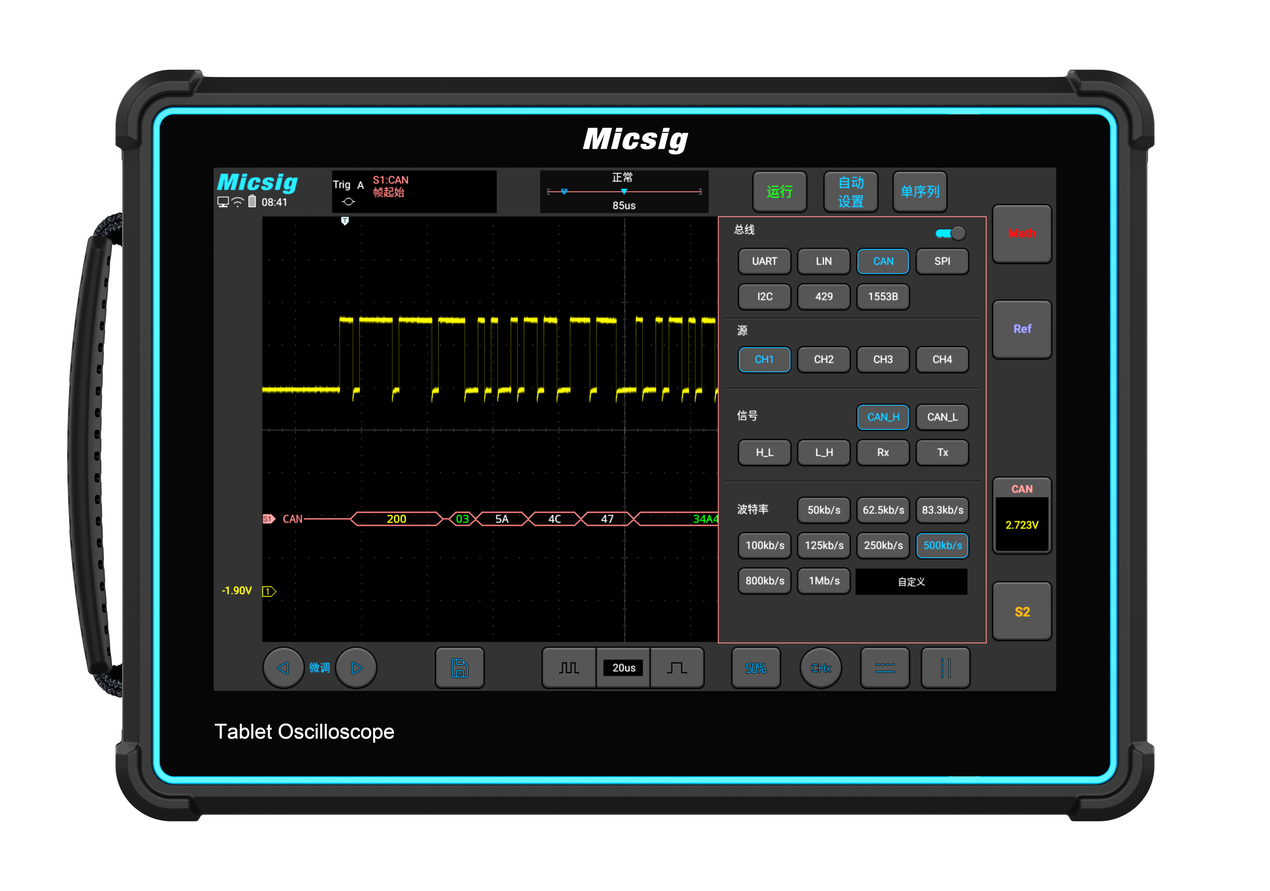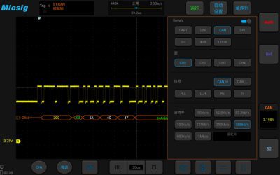 Vakiona UART, CAN, LIN, SPI, I2C, pystyy myös tulostamaan dekoodatut tiedot tekstitilassa tai CSV-muodossa.