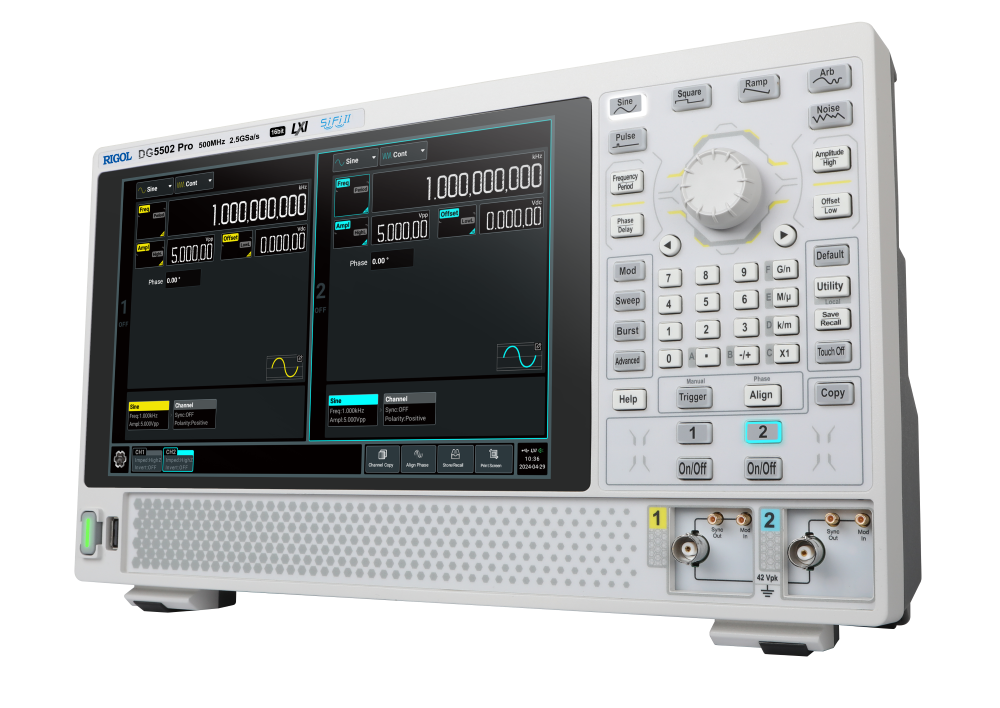 DG5000 Pro -sarjan funktiogeneraattori / vapaan aaltomuodon generaattori on RIGOLin uuden sukupolven eristetty aaltomuotogeneraattori. Si-Fi II -teknologia-alustaan ​​perustuen se saavuttaa maksimissaan 2,5 GSa/s:n näytteistysnopeuden, 500 MHz:n lähtötaajuuden ja 16-bittisen pystyresoluution. Muistisyvyys on 64 Mpts/kanava (optiona 128 Mpts/kanava). Kaksi kanavaa.
