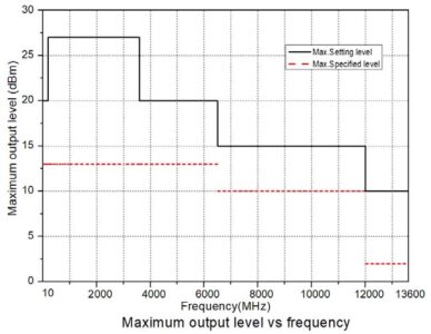 Suurin lähtöamplitudi on +27 dBm, mikä täyttää vahvistimen epälineaarisuustestin vaatimukset.