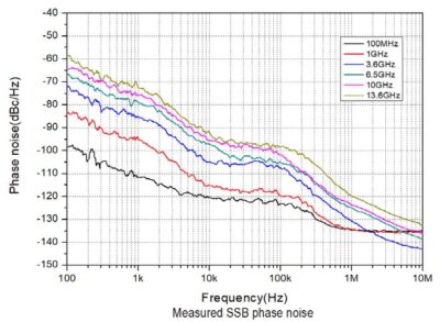 SSB vaihekohina<-116dBc/Hz@1GHz,20kHz offset