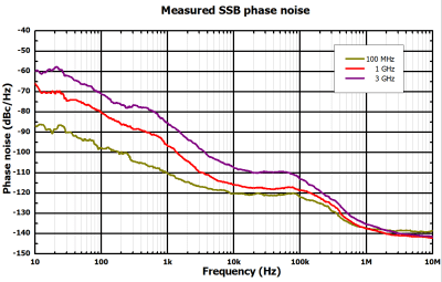 SSB vaihekohina<-112dBc/Hz@1GHz,20kHz offset