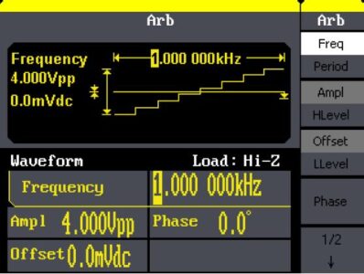 • 5 vakioaaltomuotoa (sini, kantti, ramppi, pulssi, Gaussin kohina), 46 sisäänrakennettua, mielivaltaista aaltomuotoa (mukaan lukien DC)