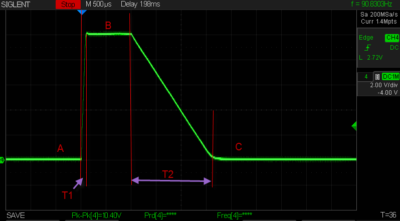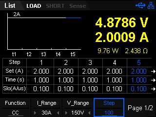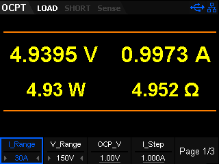 Ylitehosuojaustila (OPPT): Kun tulojännite on saavuttanut Von-pisteen, kuorma ottaa virtaa viiveajan jälkeen. Tehoarvo kasvaa askelkoolla säännöllisin väliajoin. Samanaikaisesti DC-kuorma arvioi, onko tulojännite pienempi kuin asettamasi OPP-jännite, jos on, nykyistä virran arvoa verrataan sen selvittämiseksi, onko se asettamallasi virta-alueella. Alueen sisällä OPP-testi läpäisee tai epäonnistuu. Jos se on asetetun tehon ulkopuolella, kuorma jatkaa tehonkulutuksen lisäämistä katkaisuvirran alueella ja vertaa OPP-jännitettä tuloon.