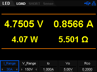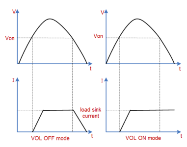 SDL1000X sisältää CR-LED-tilan erityisesti LED-ajurien testausta varten. Perinteisen CR-tilan perusteella CR-LED-tila lisää diodin katkaisujänniteasetuksen. Kun tulojännite on tämän asetetun arvon yläpuolella, DC-kuorma alkaa toimia. Siten se voi jäljitellä LEDin todellisia ominaisuuksia.