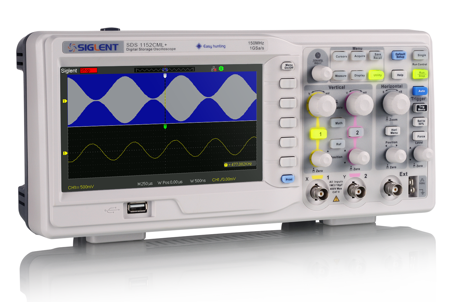 SDS1000CML+ -sarja (SDS1102CML+) on kaksikanavainen, digitaalinen oskilloskooppi, joka on saatavana 100 MHz:n ja 150 MHz:n kaistanleveydellä. Se sisältää 2 Mpts:n muistin syvyyden, joka auttaa varmistamaan aaltomuodon tarkkuuden ja sieppaamaan pidemmän signaalin pituuden. 7-tuumaisella TFT-LCD -näytöllä (800*480) on riittävästi tilaa aaltojen yksityiskohtien tarkastelemiseen ja analysointiin. 1 GSa/s:n näytteistysnopeuden ohella SDS1000CML+ tukee 32 parametrin mittausta ja yleisiä matemaattisia laskutoimituksia monimutkaisten/toistuvien mittausten nopeuttamiseksi.