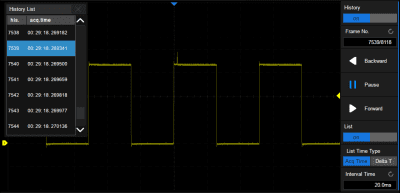 Historiatoiminto voi tallentaa jopa 80 000 kuvaa aaltomuodoista. Tallennus suoritetaan automaattisesti, jotta asiakas voi milloin tahansa toistaa aaltomuotoja havaitakseen epätavallisia tapahtumia ja paikantaakseen kiinnostavan alueen nopeasti kursoreiden tai mittausten avulla. Maskitestin epäonnistuneet kuvat voidaan tallentaa historiaksi.