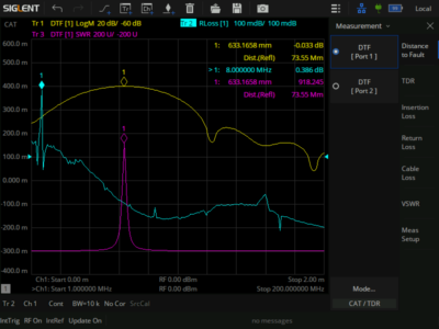 SHN900A:n CAT-tila tarkistaa ja suorittaa vianmäärityksen RF- ja mikroaaltolähetysjärjestelmien sähköisestä suorituskyvystä. Se on ihanteellinen esim. antennijärjestelmien asennukseen ja kunnossapitoon, kaapeleiden distance-to-fault -mittauksiin (DTF), yksiporttisten kaapeleiden häviömittauksiin ja antennien sovitusmittauksiin.
