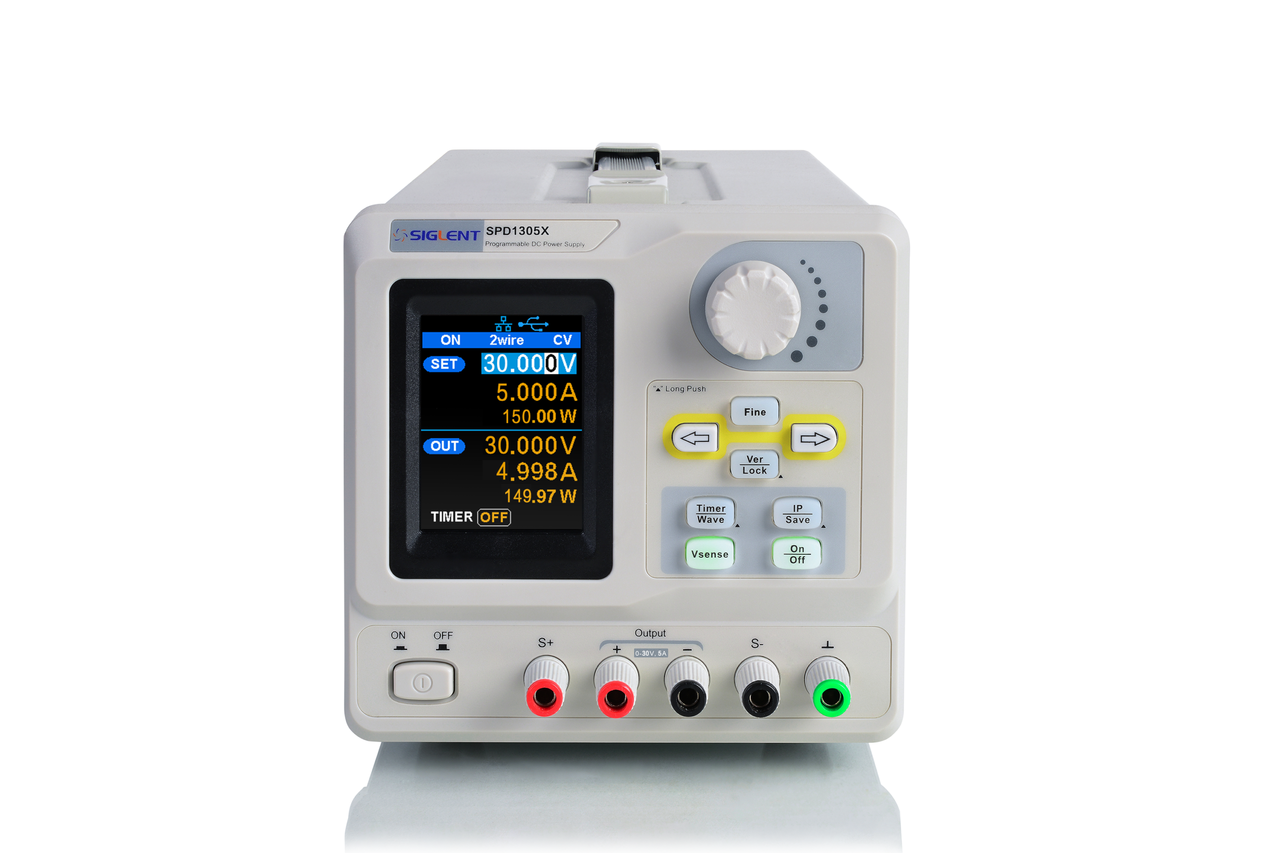 Lähtöjännite: 0–30 V, Lähtövirta: 0–5 A |