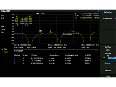 • SSA3000XP-REFL > Reflection Measurement -aktivointilisenssi (SSA3000X Plus -sarja).  Mittaa tuottohäviön ja VSWR:n. Vaatii paluuhäviön sillan tai suuntakytkimen täyden toiminnan varmistamiseksi. Katso Siglent RB3SSAX20-silta.