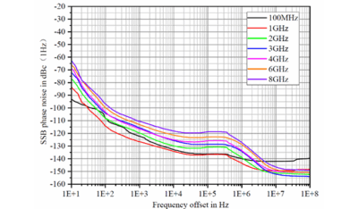 - Vaihekohina: < -132 dBc/Hz @ 1 GHz, siirtymä 10 kHz (tyypillinen arvo)