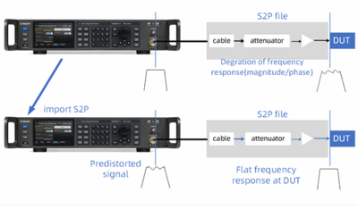 SSG6082A-V tukee automaattista amplitudin, taajuuden ja vaiheen kompensointia testijärjestelmän S2P-tiedoston perusteella. Tämä kompensointi minimoi vaihevaihtelut ja vaihekohinan samalla tasoittaen signaalin amplitudia koko taajuusalueella varmistaen yhdenmukaiset signaalitasot eri taajuuksilla. Parannetun järjestelmäyhteensopivuuden ansiosta SSG6082A-V soveltuu laajempaan valikoimaan sovelluksia ja tarjoaa tarkan ja tehokkaan testijärjestelmän suorituskyvyn.